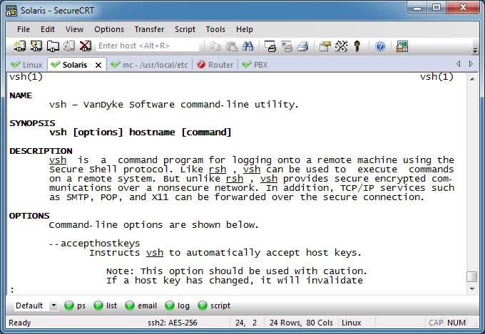 Whether you are replacing Telnet or Terminal, or need a more capable secure remote access tool, SecureCRT is an application you can live in all day long. With the solid security of SSH, extensive session management, and advanced scripting, SecureCRT will help raise your productivity to the nth degree.
