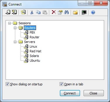 Access your full array of network devices from one client with SSH (SSH2, SSH1), Telnet,Telnet/SSL, serial, and other protocols.