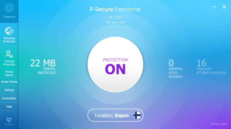 F-Secure FREEDOME VPN is an easy-to-use tool which preserves your privacy online.