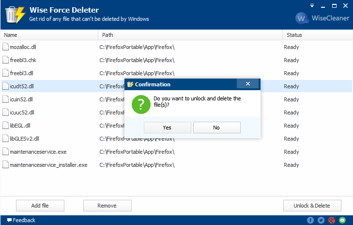 Wise Force Deleter is designed to fix all the issues above by terminating the processes using the file or removing file-access restrictions that prevent you from deleting a file. With Wise Force Deleter, you can unlock and delete any file without frustration in Windows.