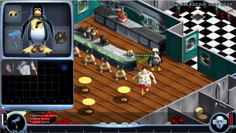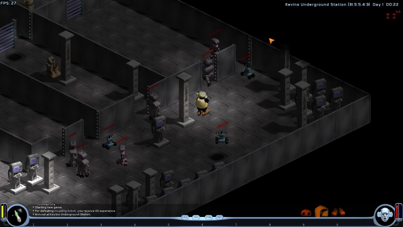 FreedroidRPG features a real time combat system with melee and ranged weapons, fairly similar to the proprietary game Diablo. There is an innovative system of programs that can be run in order to take control of enemy robots, alter their behavior, or improve one's characteristics. You can use over 50 different kinds of items and fight countless enemies on your way to your destiny. An advanced dialog system provides story background and immersive role playing situations.
