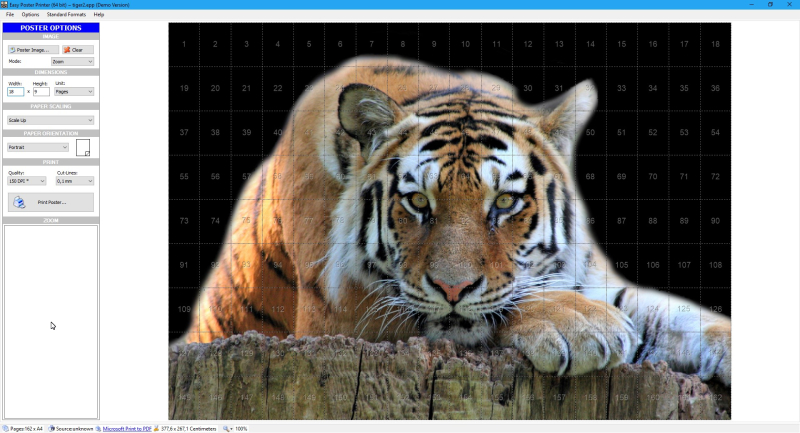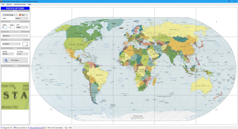 Easy Poster Printer is an easy to use application for creating posters (in any size up to 20 x 20 meters) using a regular printer. With Easy Poster Printer its easy to insert a photo and write custom text, decide the size of the poster, paper format (for the printer) and even export the poster images and use your favorite print software.
