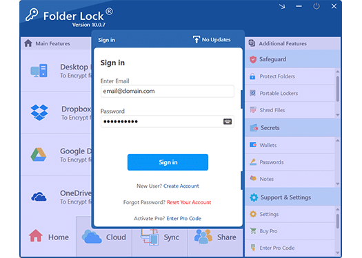 Folder Lock lets you password-protect files, folders and drives; encrypt your important files on-the-fly; backup them in real-time; protect portable drives; shred files & drives and clean history.