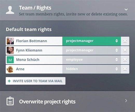 As manager you decide which team members can see and edit what. Assign global and project based rights,