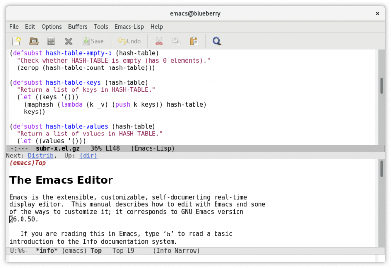 - Highly customizable, using Emacs Lisp code or a graphical interface.