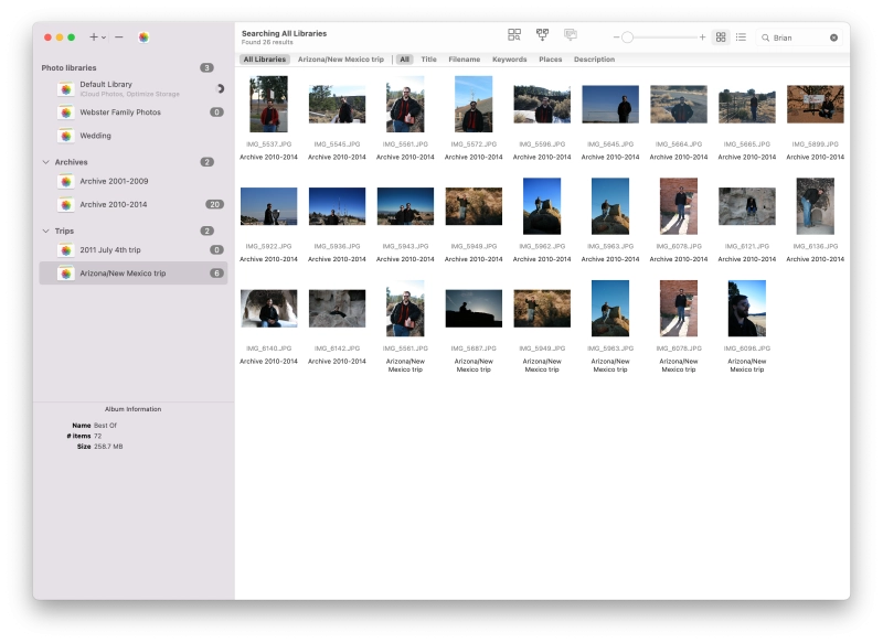 Instead of being limited to putting all your photos in a single library, PowerPhotos can work with multiple Photos libraries, giving you many more options for how to organize your ever growing photo collection.
