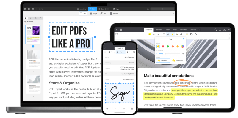 Some PDFs like scanned books or receipts aren’t searchable and don’t allow you to select and highlight text. That’s where PDF Expert saves time. Its powerful OCR technology based on the Apple Vision framework recognizes text in scanned files, with the highest level of precision and lightning-fast speed.