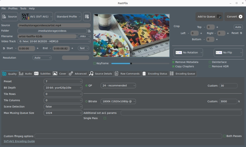 FastFlix is a free GUI for H.264, HEVC and AV1 hardware and software encoding!