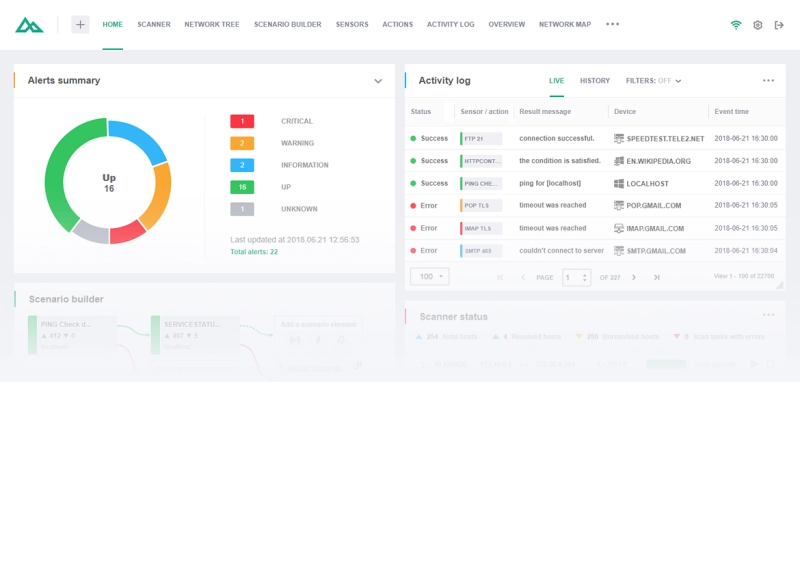 Monitoring of all components of the corporate network is an integral part of any large company’s effective strategy. Reaching your target network uptime requires that issues are taken care of as soon as possible. Network Olympus provides the most comprehensive all-in-one solution to flexibly monitor your corporate network and quickly react to any issues that may arise.