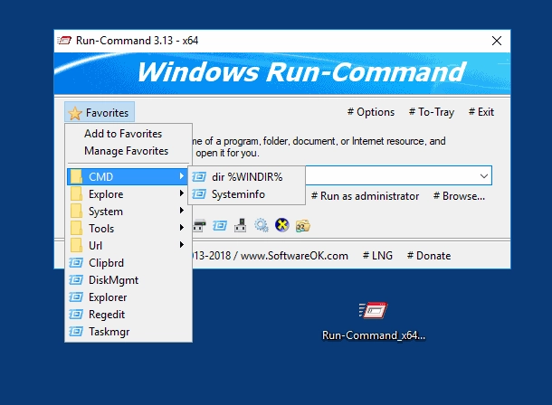 In this program you will find a number of improvements for example, the function run as administrator and add to favorites commands for frequently used commands. You can comfortably manage the favorites and grouping by command categories is also possible.