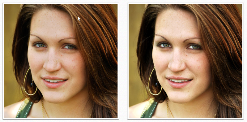 Create portraits with skin that looks perfect! SoftSkin Photo Makeup softens skin to provide a flawless photo, giving your subject a glamour look. We don't believe in models looking like plastic dolls, so you won't get a 'plastic' look on your photos. Instead, we improve the natural skin texture to give skin a natural healthy look.