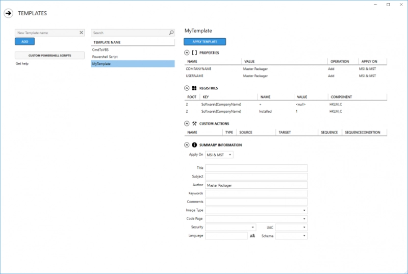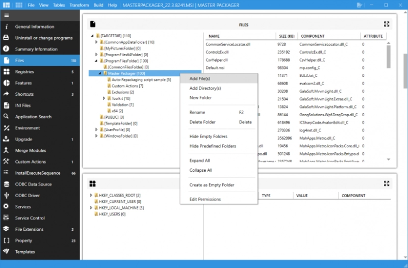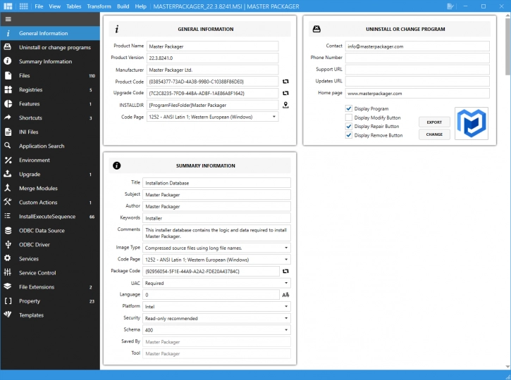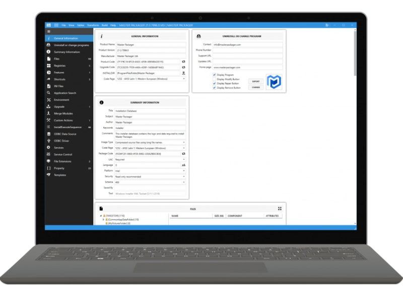 Master Packager is an application packaging tool to create and edit Microsoft Windows Installer (MSI) files and repackage other installations to MSI format.